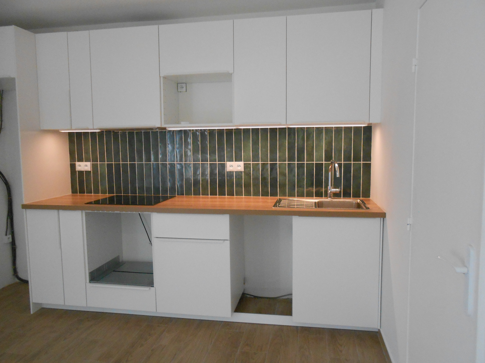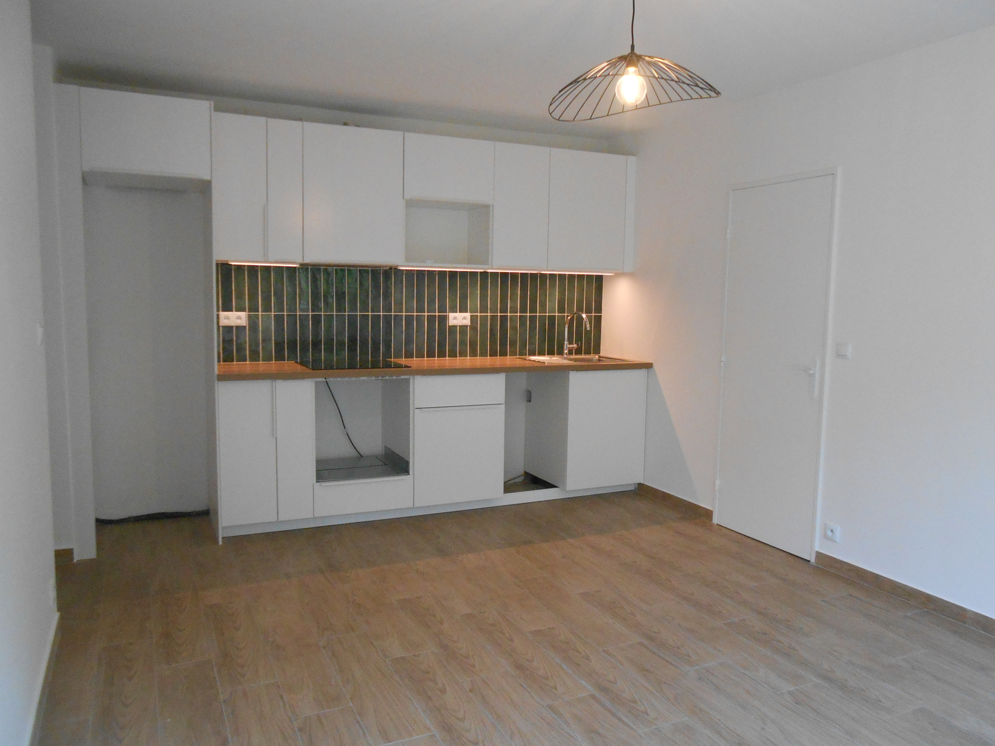 Comprénant : Une entrée avec placard, séjour avec cuisine ouverte aménagée/équipée plaque et hotte,